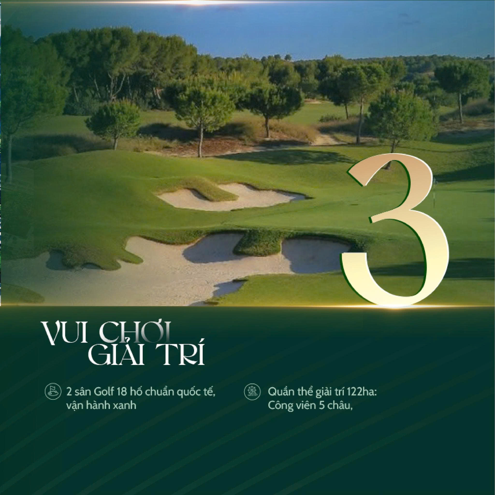 - Sân golf tiêu chuẩn quốc tế: Không gian thể thao quý phái, phục vụ giới doanh nhân và những cư dân yêu thích bộ môn biểu tượng cho phong cách sống tinh hoa.